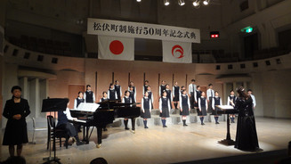 式典のお祝いは式次第に沿って行われました。埼玉県立松伏高校吹奏楽部の演奏に始まり、来賓の方々の祝辞、松伏町ゆかりのビーチバレーの石島雄介選手、プロゴルファ-の石川 遼選手のビデオメッセージもありました。式典の終わりには松伏高校の合唱部の若き素晴らしい歌声によって式典がさらに盛り上がったように思います。厳かな中にも先人の方々が長年に渡って努力されてこられた「音楽による町づくり」の成果を町民の皆様をはじめ来賓の方々を含めて存分に堪能出来た式典ではなかったかと思います。式典の様子の写真を数枚載せさせていただきました。参加されなかった方々も式典の様子を感じ取っていただければ幸いです。