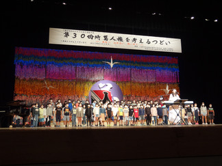 こんにちは 増田ひとし通信です。10月7日(木)春日部市民文化会館で「義」をテーマとした第30回埼葛人権を考えるつどいに出席した。午前9時からオープニングセレモニーでの春日部私立武里西小学校6年生とかすかべ親善大使あえかさんとの合唱に始まり、開会、主催者挨拶の開会行事の後、10時半から午後3時45分の閉会行事まで会館の内外でさまざまなもようしものがあった。松伏町から館内ステージで松伏神社のささら獅子舞、県立松伏高校合唱部の皆さんの素晴らしい歌声が披露された。さらに、屋外の藤ステージでもーUー Dance Companyの皆さんのダンスの披露があった。さらに、屋外の出展ブースに松伏町立カルガモセンターから小物などが、ゆめみ野工房からパン、焼き菓子など、生活介護事業所 心から手工芸品などの販売があった。